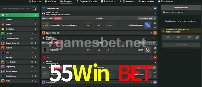 O 55Win Bet oferece uma grande seleção de opções de apostas em e-sports com probabilidades competitivas